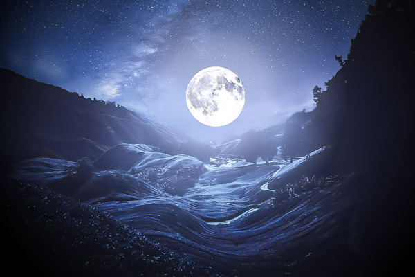 玉笛声声,宛如流水清婵;满地的银霜如从银河缓缓下降。