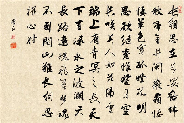长相思呵长相思,我们相思在长安,秋天蟋蟀常悲鸣,声声出自金井阑。薄霜凄凄送寒气,竹席已觉生凉寒;夜里想她魂欲断,孤灯伴我昏暗暗。
