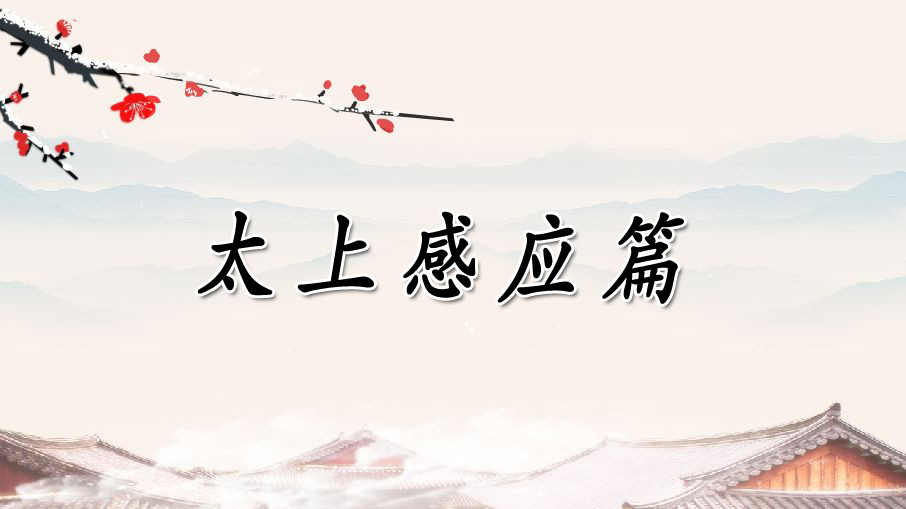 《感应篇直讲》云:太上,是太上老君,姓李名耳,得道为仙家之祖,系上天至尊之圣。《感应篇》,是太上劝人作善之书。感,是感动,应,是报应;言人以善恶感动,天必有祸福报应。